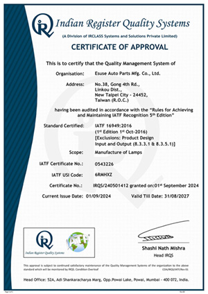 Esuse is an ISO 9001 and IATF 16949 certified company. All process complies with global quality management standard of automotive industry .